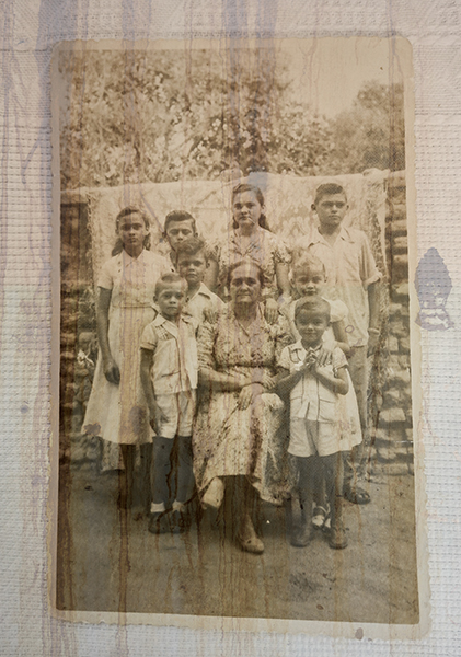Fotografia e colagens digitais / 10 / Eliza Raulino é minha avó paterna. Mulher nordestina e sertaneja com poucos registros fotográficos. Não nos conhecemos, ela partiu onze anos antes da minha chegada. A experiência com a maternidade e a atual pesquisa do doutorado tem me levado até ela. Busco origens, raízes, histórias, fragmentos, apesar das lacunas e vazios, construo parte da história dessa mulher que esteve grávida por mais de dez anos, vivenciou catorze partos vaginais e criou 13 filhos. Revirei álbuns, diapositivos e memórias, em busca da cidade de seu nascimento, Martins (no Rio Grande do Norte), de 30 anos atrás — quando eu era criança e visitava a região com frequência. Busquei também imagens de 80, 90 ou 100 anos, quando Eliza morou na casa do Sossego (região que pertencia ao Município de Martins até a década de 1990). Imagens vistas, outras inventadas, me aproprio de memórias pessoais e alheias. Uma imagem nunca é uma realidade simples, alerta Rancière. Tento dar uma mordiscada nesse passado de tantos apagamentos e arquitetado no enredo de todos para quem sabe reencontrar ou reconstruir os sentidos dessas imagens, e a partir delas elaborar novas fotografias. Um presente e futuro de costuras refeitas, ou um presente eterno, como se fosse possível instalar um passado e um presente contínuos. Durante anos quis retornar à casa onde Eliza nasceu e viveu até a adolescência. A mesma casa do Sossego onde meu pai, quando criança, passou férias, assim como eu também. Voltei em julho de 2022 e mergulhei em um açude de lembranças. Fotografei. Relembrei a infância ao lado de irmãs e família ao mesmo tempo em que pensava como minha avó teria vivido ali. Iniciei também uma nova história com meu filho, ao visitar pela primeira vez o local. Uma trama que permeia cinco gerações dentro de uma casa centenária. Eliza me deu nome e ancestralidade. Vim dela, assim como, e principalmente, da minha mãe, Cíntia. Uma linha de mulheres que segue amarrando corpos e ausências ao longo da história. Sigo investigando trajetórias, sobrepondo passado e presente, tecendo tempos, afetos e ausências. O ato de fotografar como uma forma de revisitar e reinventar essa herança, entre real e imaginado, criando um espaço contínuo onde é possível um roçar de gerações.