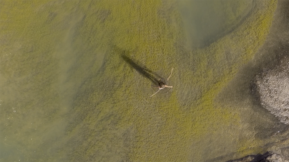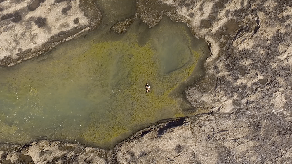 Um pequeno filme sobre o poder curativo da natureza, sobre a deriva da maternagem, sobre a espiral do tempo, sobre o mar e o silêncio. Sobre uma pedra-útero. Pedra e água, mãe e filha Evocando a imagem da espiral e inspirados em um aforismo que eu havia ouvido num terreiro de Ifá : em Exú o indivíduo está ao mesmo tempo atrás e adiante de si mesmo, ou seja, ele inventa o tempo.